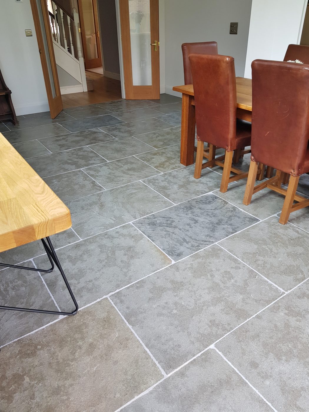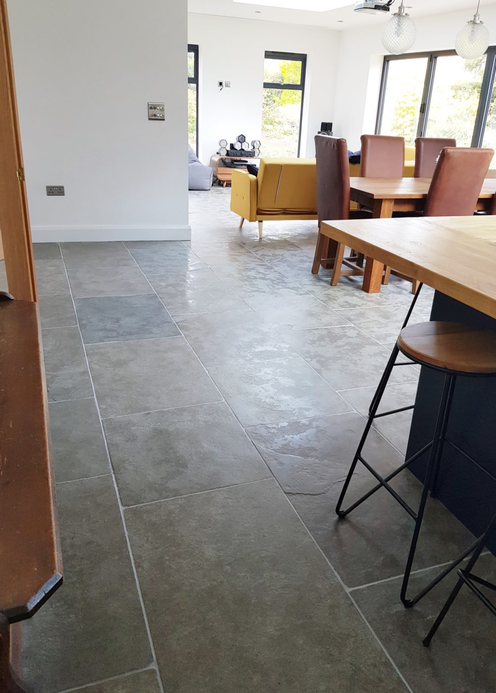 Dover Tumble Limestone is Reminiscent of the original flagstone floor it features soft shades of grey, with worn textured slightly tumbled edges and a riven surface. All of which make this beautiful limestone look centuries old.
