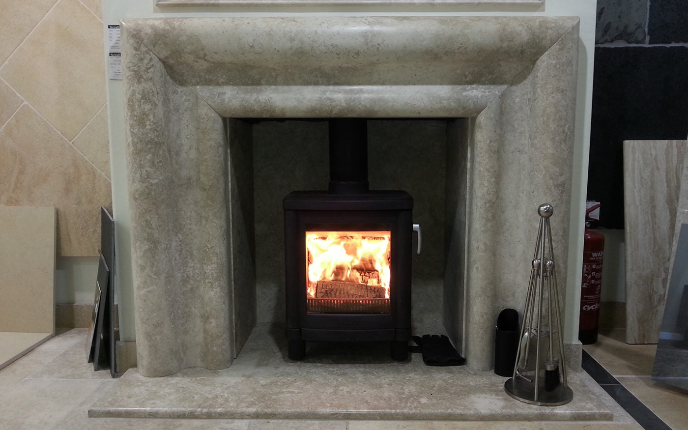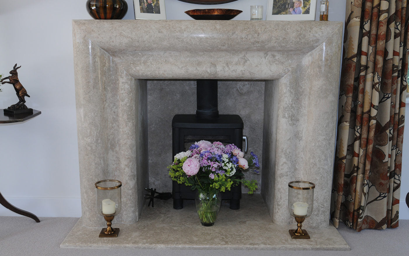 Made to measure and carved out of solid stone, the Palermo fireplace features a subtle mixture of warm grey and gold colours intertwined with characteristic fossils and veining. This is a stunning feature and will give grace and elegance to any home. This is a bespoke product so please get in touch to discuss your requirements.