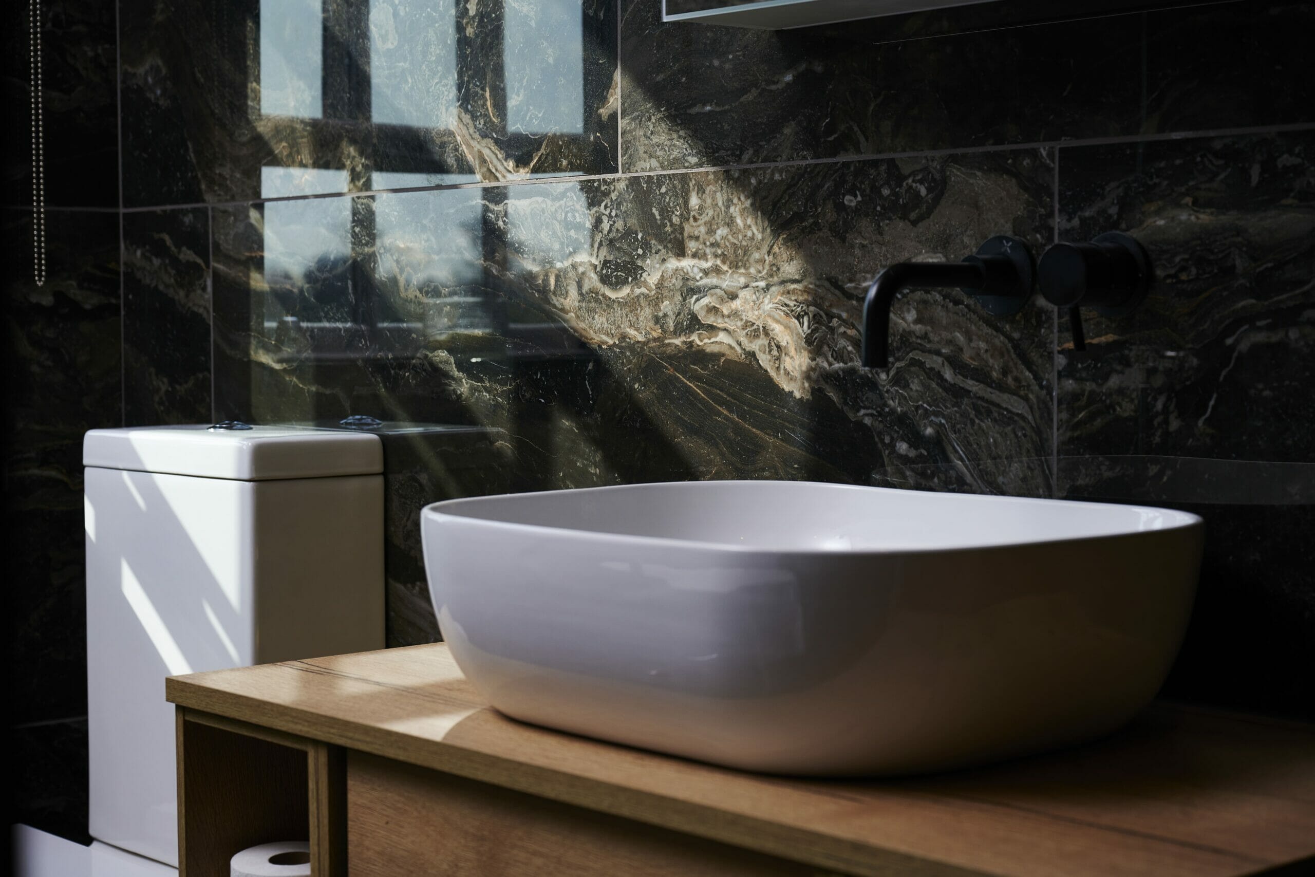 A stylish and unique marble effect porcelain tile with a dark grey background with lovely creams, dark brown and caramel colours moving elegantly together. Perfect for creating a chic living space in any room. Available in two large format sizes, as well as a book match feature option – all in a polished finish. There is also a light version of this product.