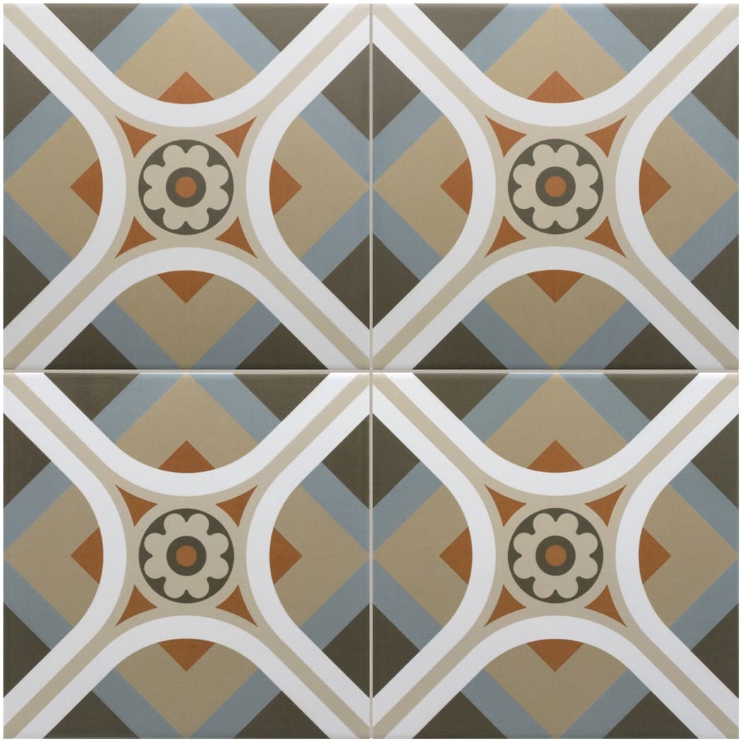 The Patrona decor collection offers a traditional and charming decorative tile, perfect for kitchens, bathrooms and hallways. Available in a stylish square format and a range of earthy green, brown, and blue tones. These porcelain tiles feature a soft matt finish and are suitable for both floor & wall applications.