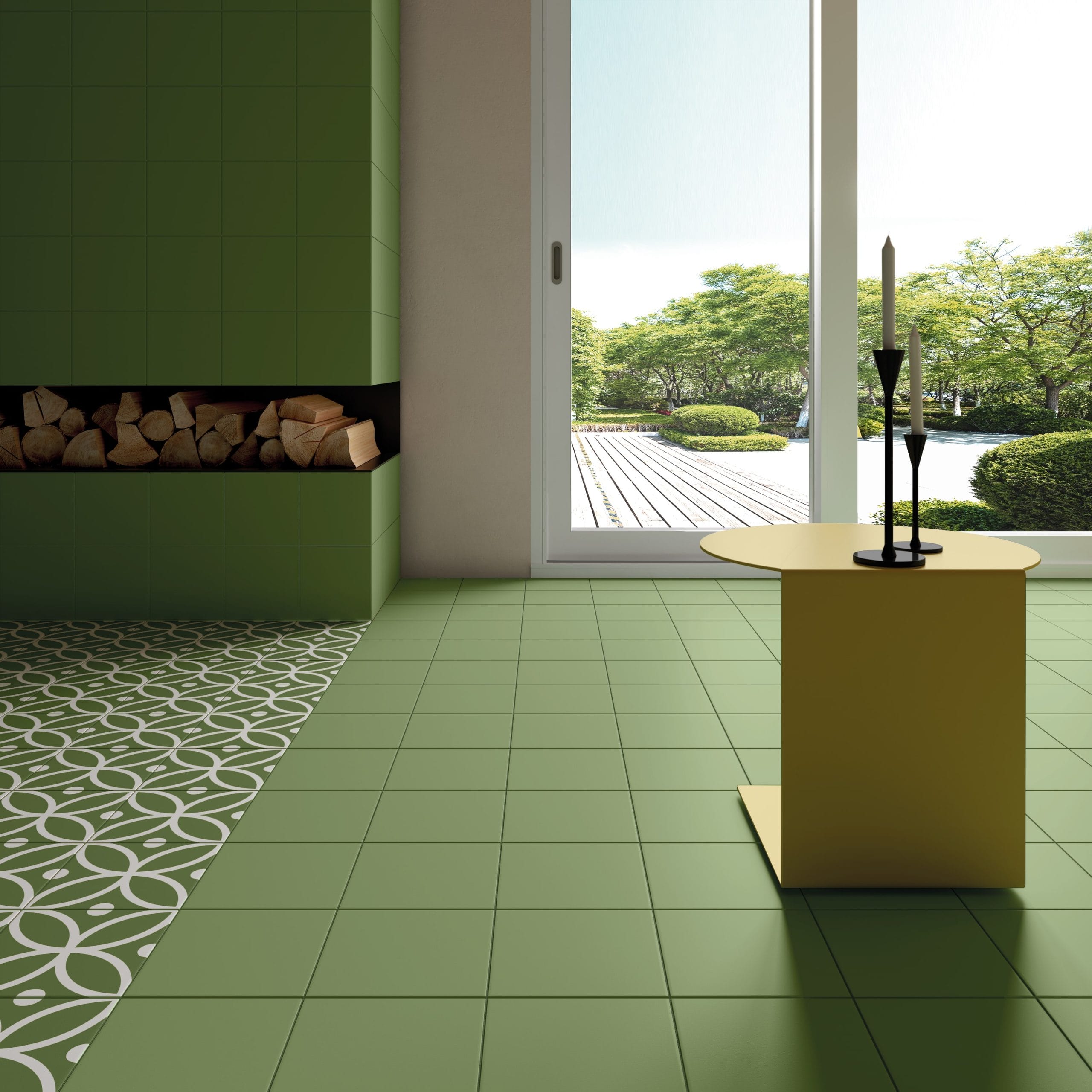 Patrona plain tiles are available in a stylish square tile format, which allows you to play with composition and colour mix, or create rich monochrome displays. With a broad range of 6 colours available, in a soft matt finish, they are suitable for both floor & wall applications.