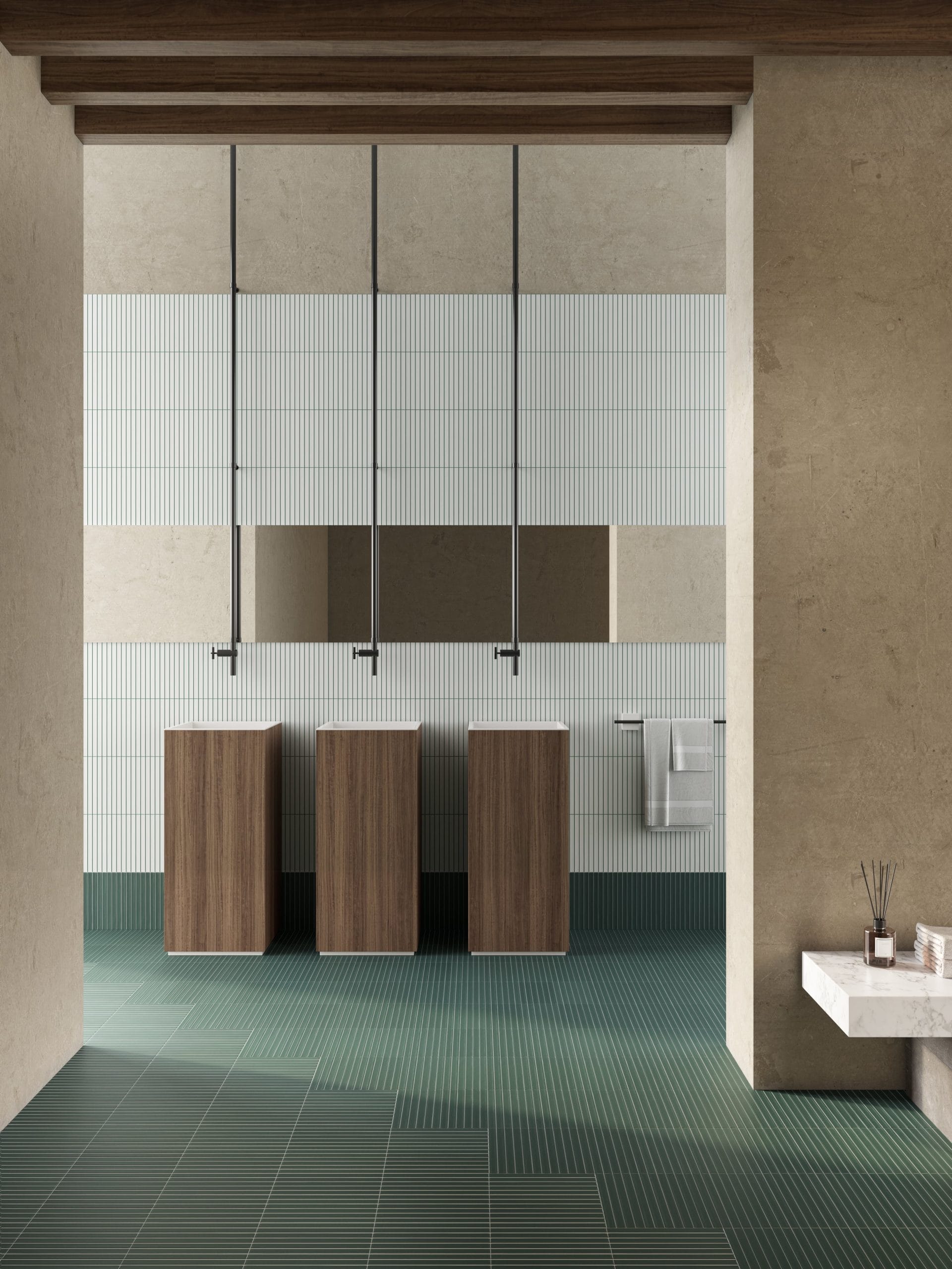 Colori is our new collection of ‘Kit Kat’ tiles, a stunning play of thin lines that can be used to create geometric patterns. Consisting of an extensive range of chic colours from bolder colours to subtle pastels, these versatile porcelain wall and floor tiles will add style and character wherever used.