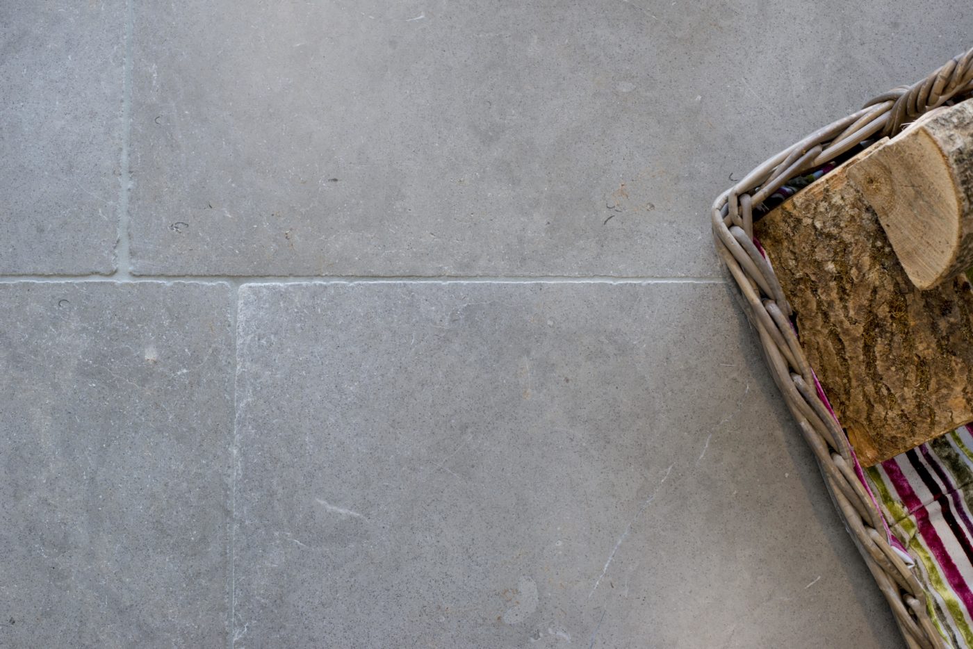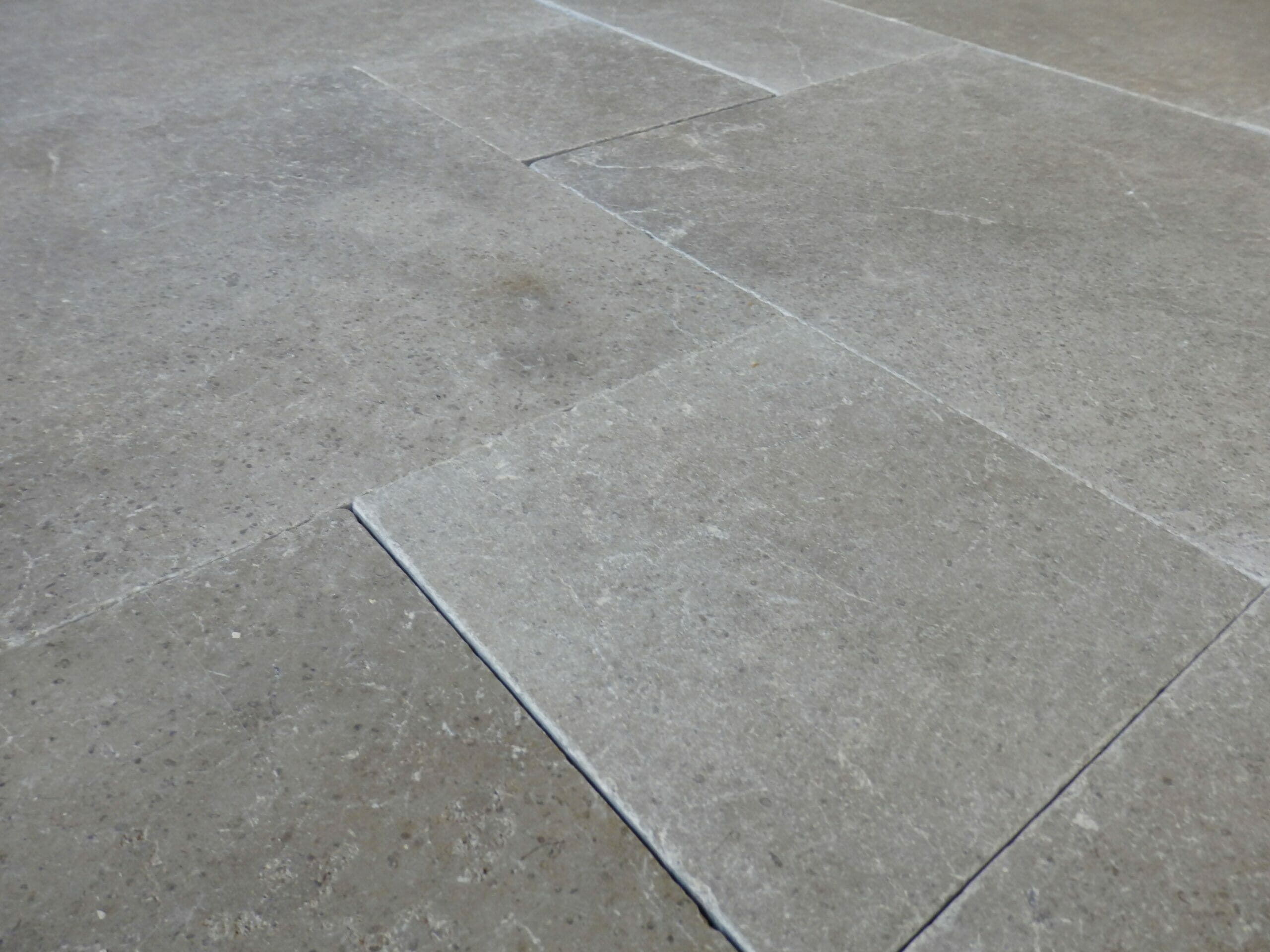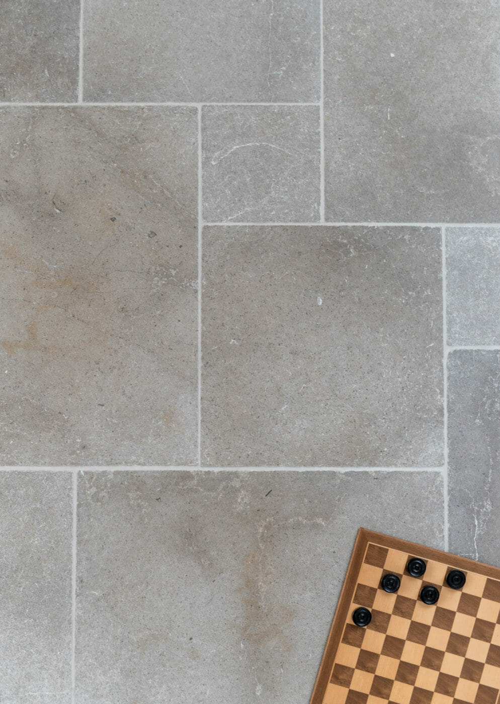 A beautiful tumbled Limestone with grey as a predominant colour enhanced by subtle Black Sea fossil markings and delicate white and gold veining, ideal to achieve a very sleek look. Our Anomite Tumbled Limestone is available in different sizes – this version is a very versatile Petit Opus Pattern style.