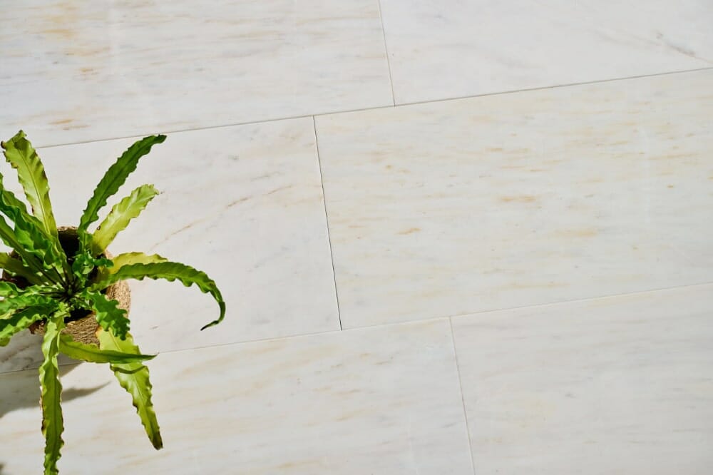 The Calacatta Gold Honed Marble collection is also available in 305 x 75mm bricks.