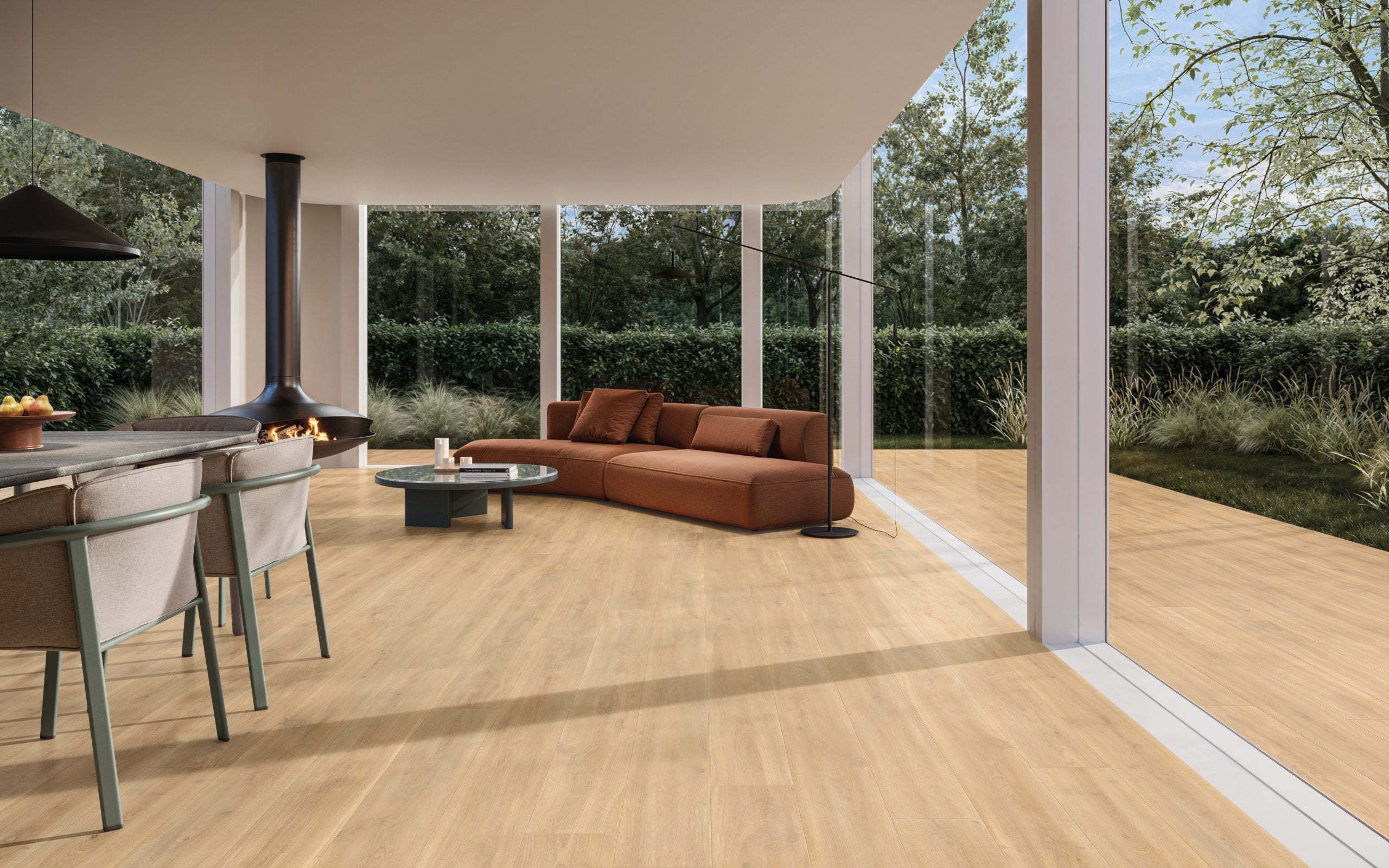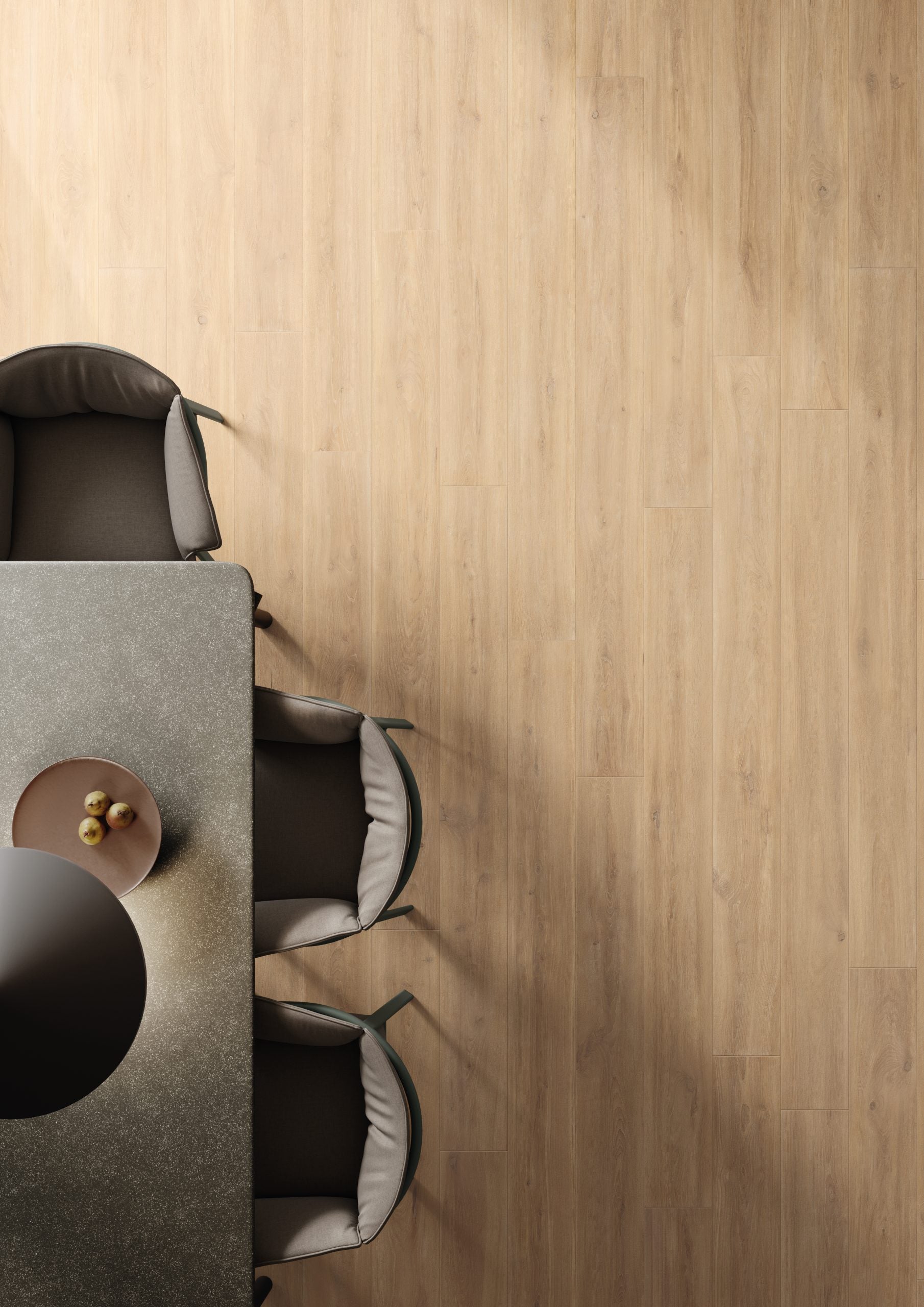 Available in large 1200 x 200mm planks, it combines the beauty of wood with the durability and low maintenance of porcelain, suitable for modern or traditional interiors, kitchens, living areas, and hallways.