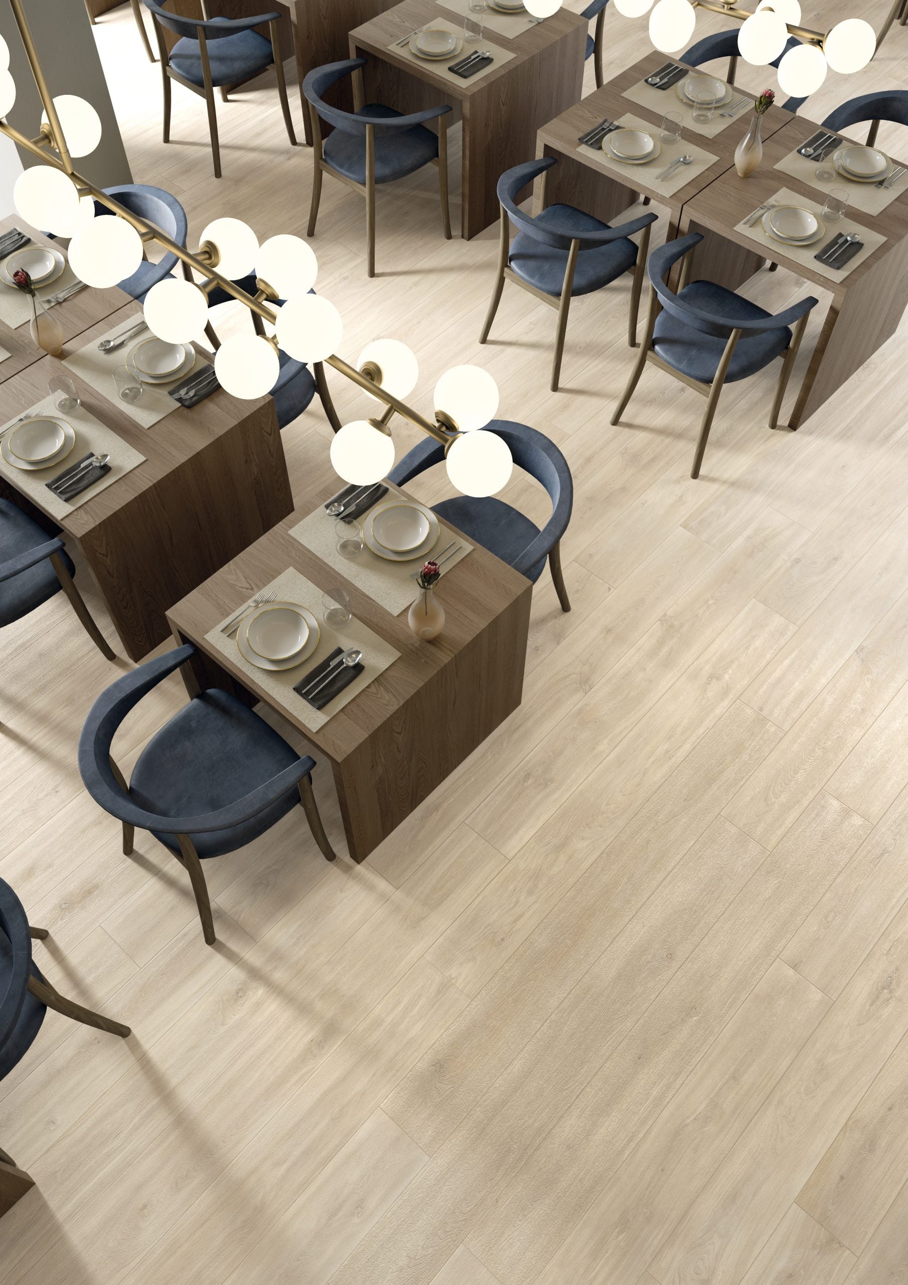 Albero Beech is a wood-effect porcelain tile with the warm, honeyed hues of beech wood. Made using the latest print technology, it delivers a highly realistic wood grain. The saw-cut matt finish, rectified edges, and different face variations creates a natural, varied look with minimal grout lines for a clean, seamless finish.