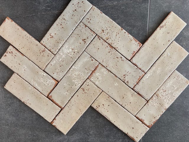 This gloss brick porcelain tile will add a unique look and feel to any space in your home. The warm beige base is layered with subtle sandy and taupe hues, which catch the light beautifully thanks to the glossy finish and adds depth to the tile. The edges are slightly uneven giving the tile a hand made feel.