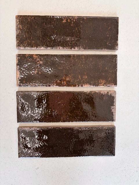 This gloss brick porcelain tile will add a unique look and feel to any space in your home. The earthy rusty tones have a copper-coloured base that catches the light beautifully with the gloss finish and adds depth to the tile. The edges are slightly uneven giving the tile a hand made feel.
