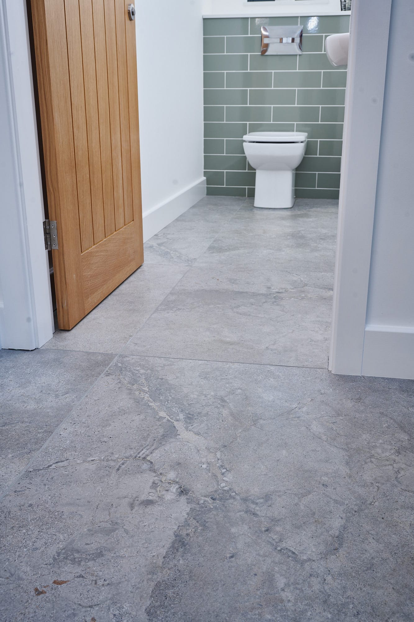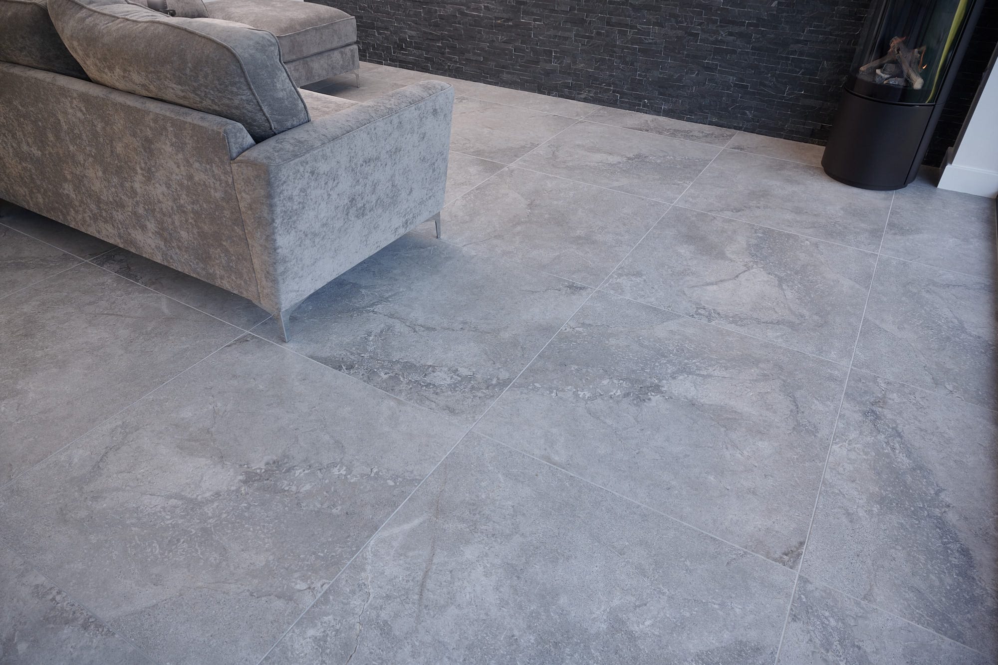 An Italian Porcelain tile replicating a natural silver travertine stone, a classic stone look in a practical, hard wearing porcelain tile. Available in three sizes and a matching exterior version.