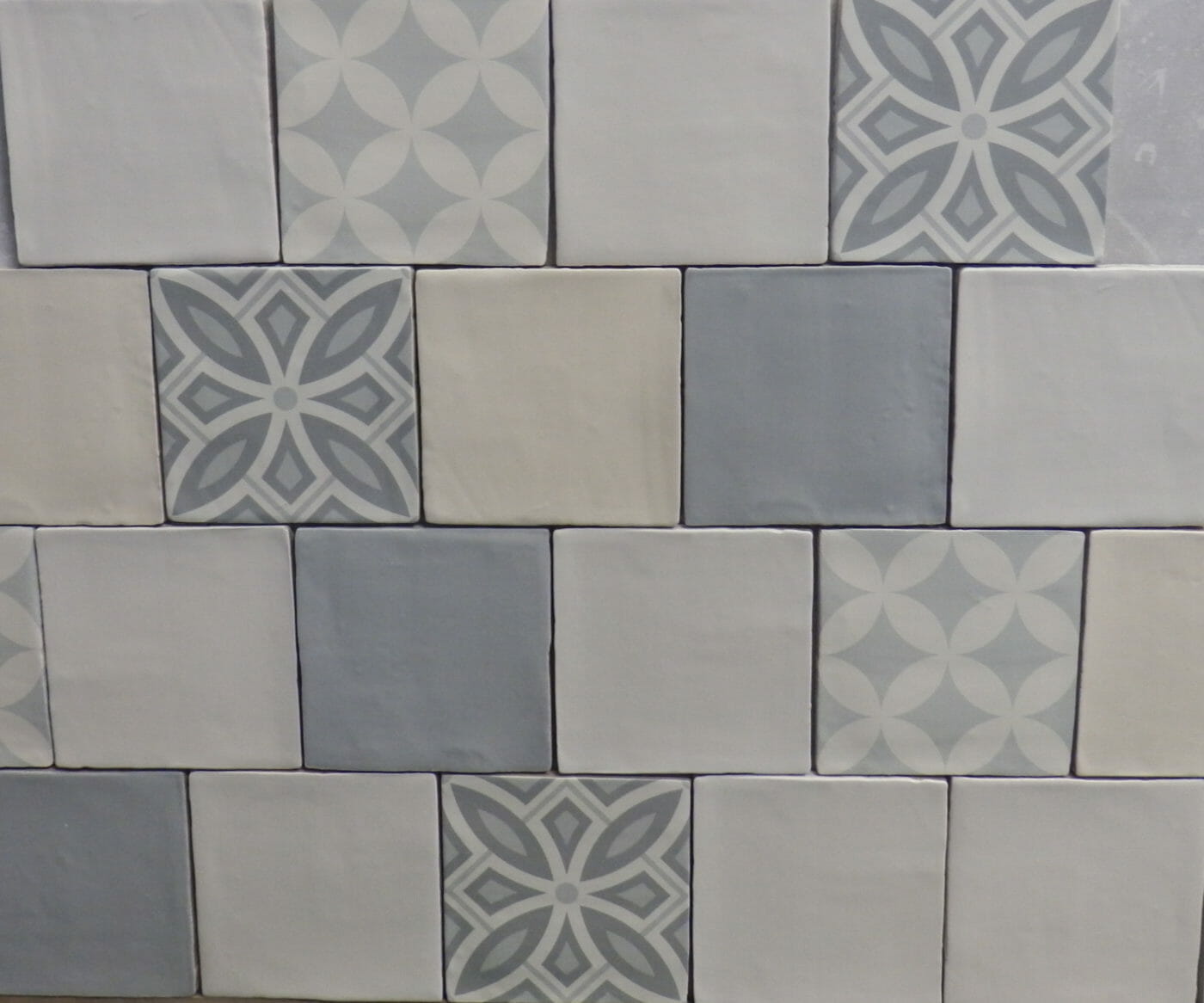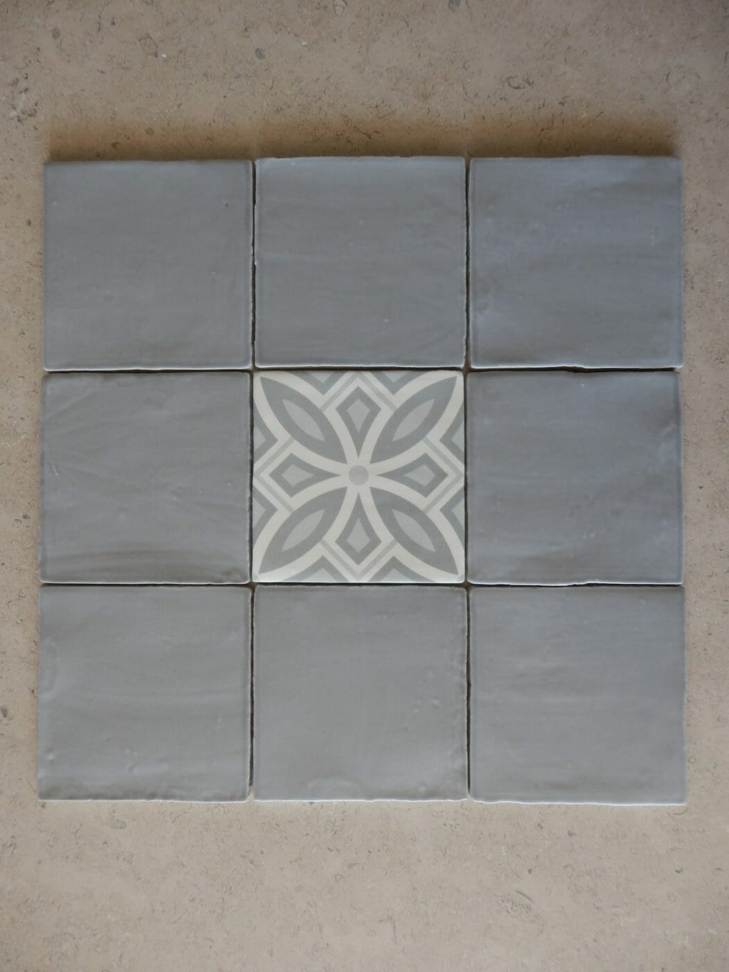 This plain grey tile is part of a gorgeous collection of four base colours and four décor designs, with an authentic handmade look. These Italian porcelain tiles can be used on both floors and walls and you can create your own design combining colours and decors together or alone. The collection consist of tiles in subtle shades of creams, whites and greys.