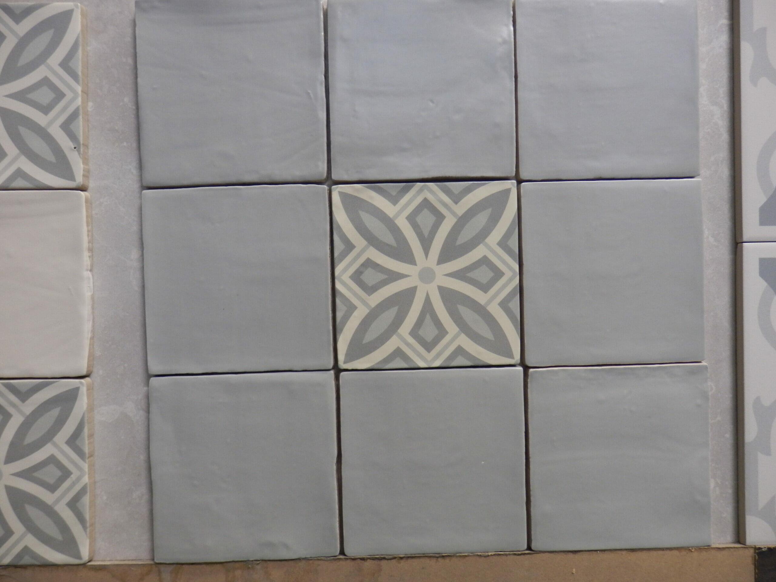 This grey tile is part of a gorgeous collection of four base colours and four décor designs, with an authentic handmade look. These Italian porcelain tiles can be used on both floors and walls and you can create your own design combining colours and decors together or alone. The collection consist of tiles in subtle shades of creams, whites and greys.