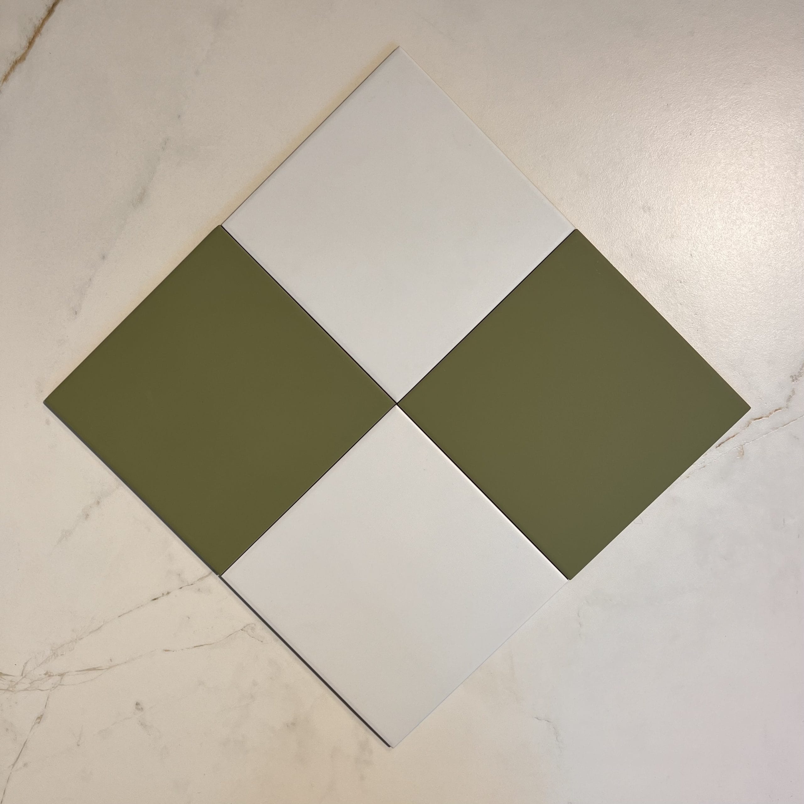 Victorian Patrona Lawn Green & Old White Chequer Porcelain (2 Full Tile Samples)