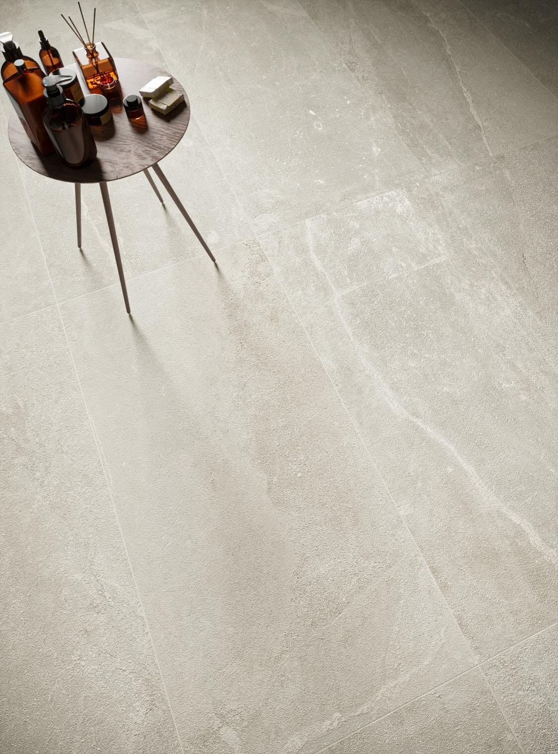 The range is inspired by a special Italian form of asphalt rock known for its unique colouring, its fossils and veining. Available in 4 colour options and a matt or an aged finish. The aged finish has a slight sheen giving the feel of an ancient floor that has been walked on for centuries.