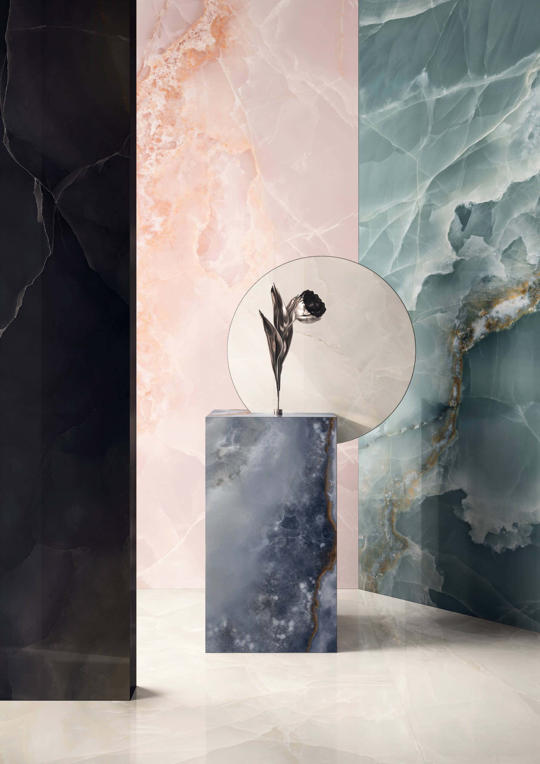 The shade variations and transparent effects that typify onyx are stratified below the surface, for a refined three-dimensional impression. Thanks to its exceptional flatness and superior finish, these tiles are destined to stand the test of time.