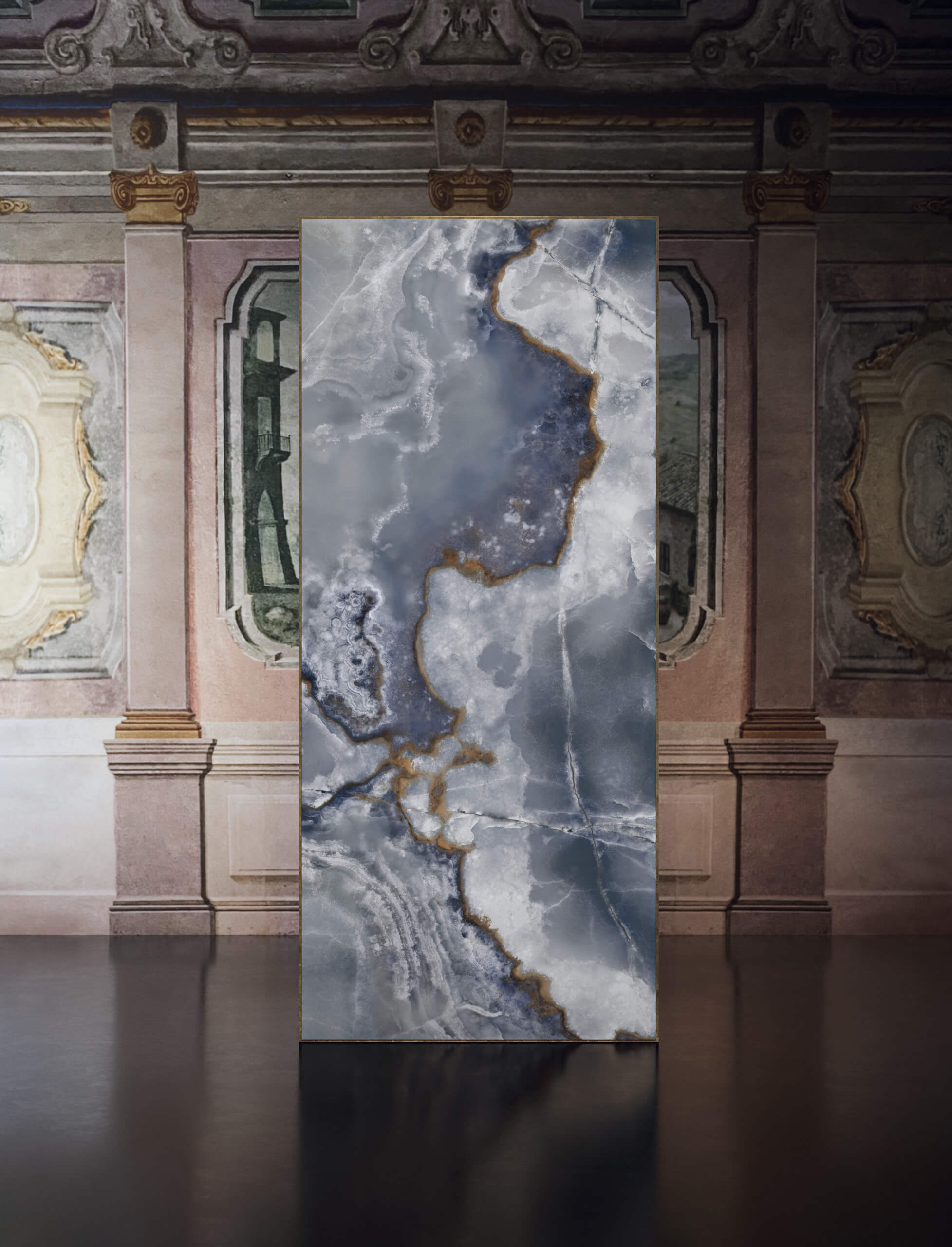 This collection mimics authentic onyx and celebrates the seductive beauty of the stone with its intriguing translucent quality and the infinite shifts in tone. These porcelain tiles not only reveal the secret beauty of nature but also strive for the perfection and uniqueness of a work of art.