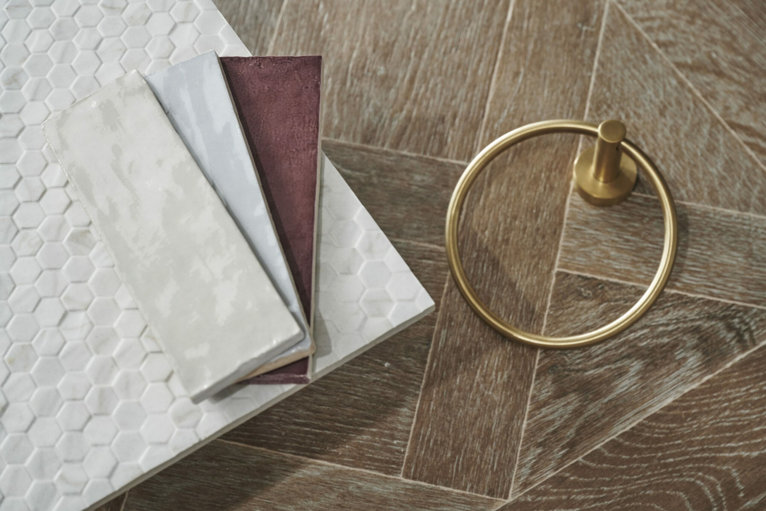 An authentic parquet wood look porcelain tile, replicating an original, characterful floor in four natural warm colours – without the maintenance of a wooden floor. This range is a hard wearing rectified porcelain in a large 900 x 900mm tile.