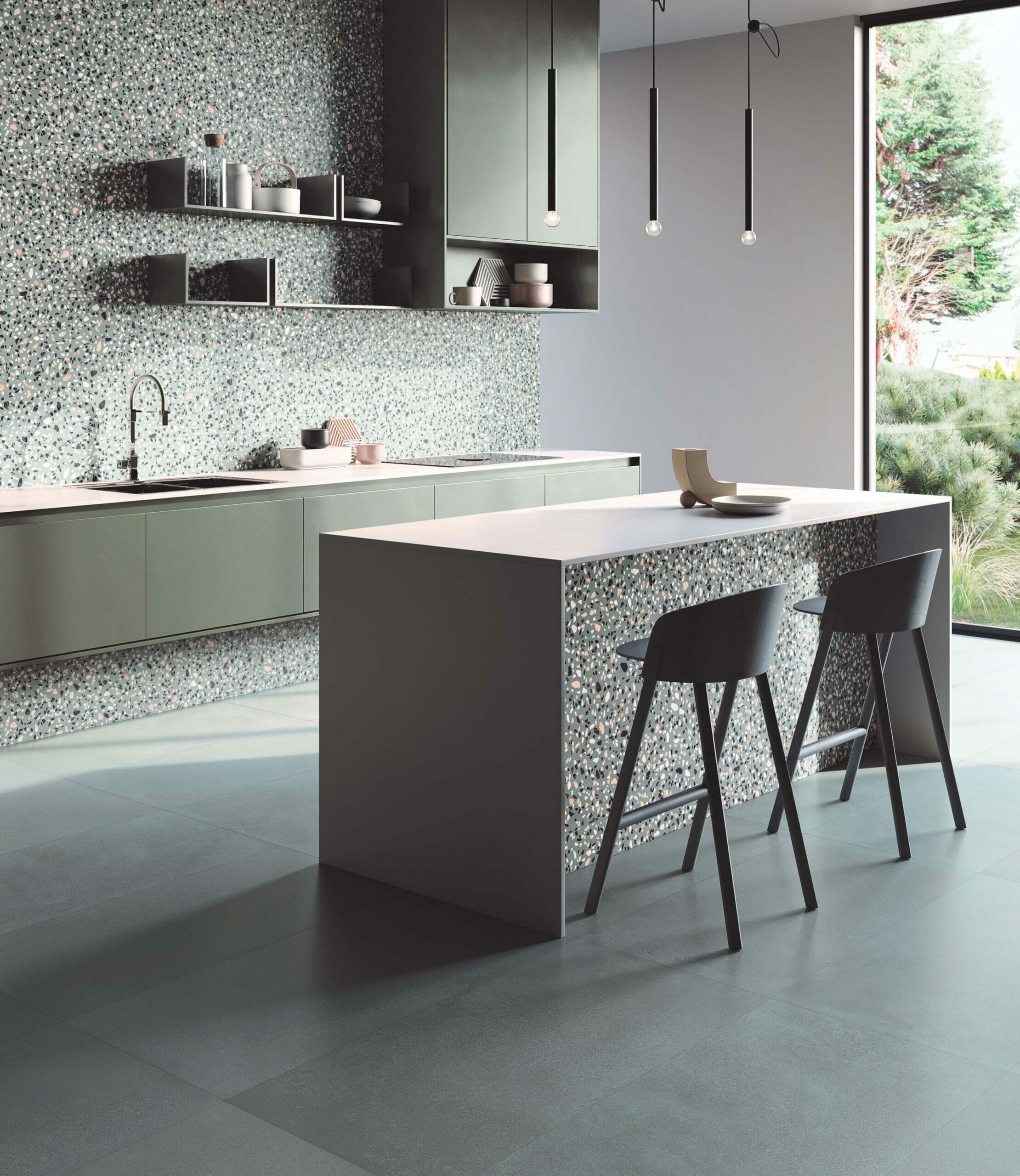 These plain tiles in modern pastel shades can be used on their own or matched with our Venice Terrazzo porcelain collection.