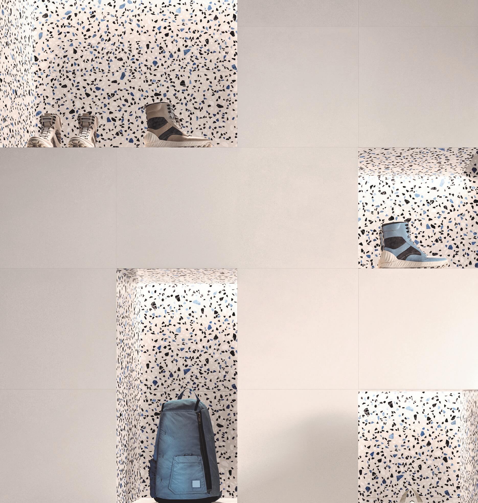 Our Venice Terrazzo porcelain collection is inspired by the original Italian Terrazzo floors. This range comes in some modern and exciting colours with matching plain tiles to complement the range.
